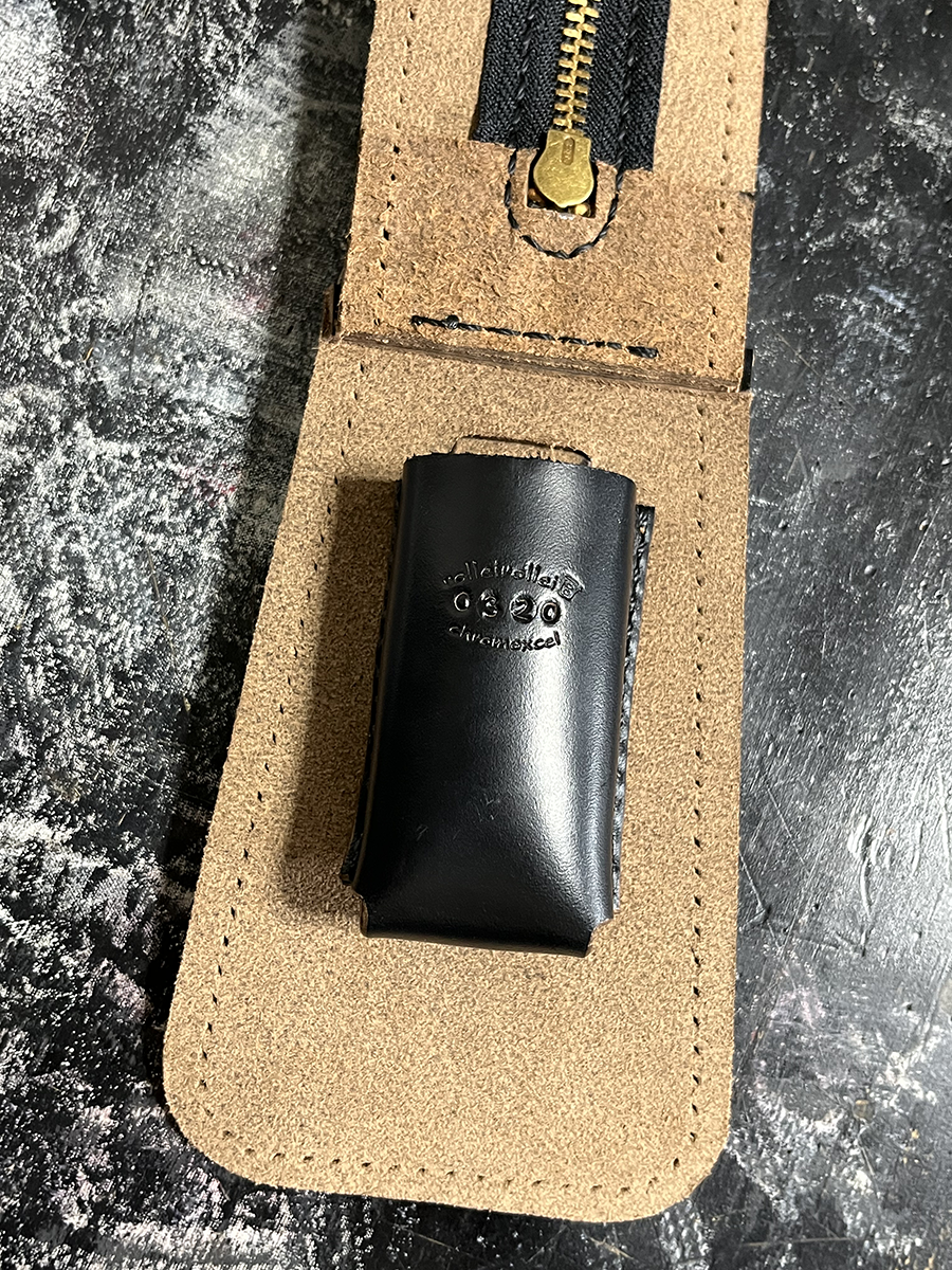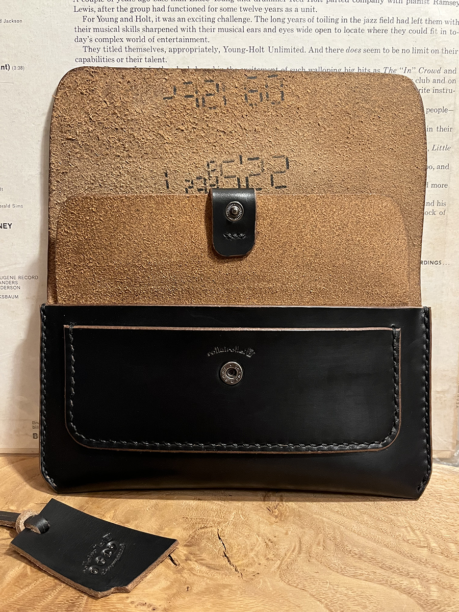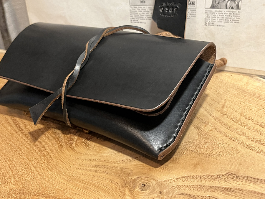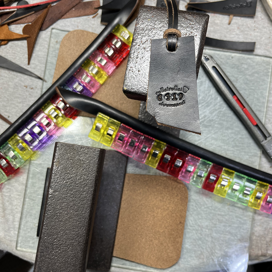 いつもは好んでkudu革で作りますが、今回はバッグと同じクロムエクセルで。 ナンバーロゴもタグではなく直接打ちました。 320個目の作品ということになります。