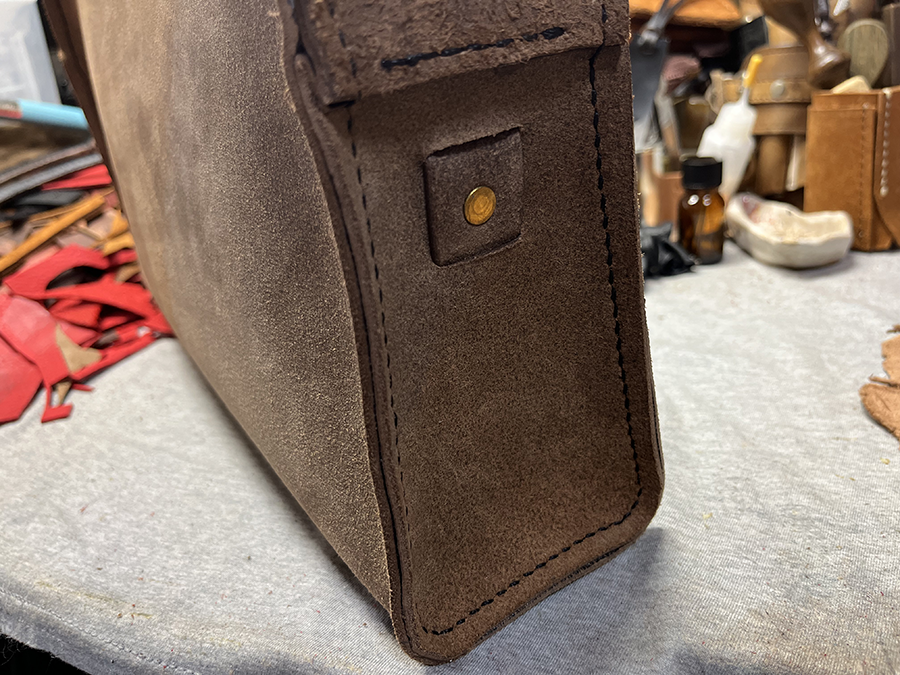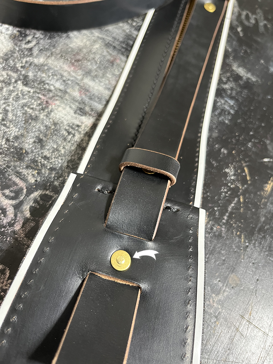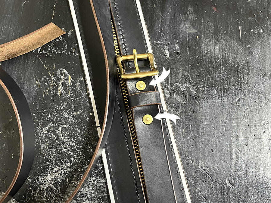 今回のクロムエクセルで作るバッグはリベットを逆に付けてます。 このリベットの打ち方はどちらを表面のするのか諸説あります。 僕は今回のように「打ち付ける方を表側」にするのは初めてです。