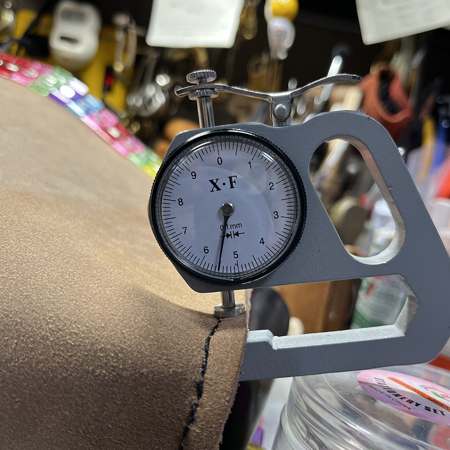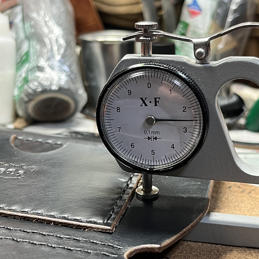 クロムエクセルはカッコイイですね。 革が変わるとフォルムというか財布としての佇まい(雰囲気)が違って見えます。 丸革の端の方で切り出してるので厚みが薄いかな〜と思ってましたが2.4mmはありました。 財布だと通常1mm弱とかで作るのかな〜。