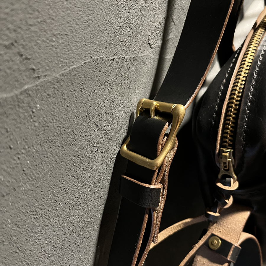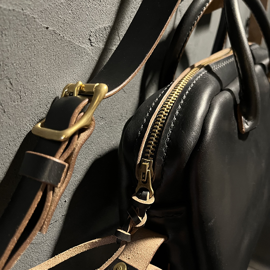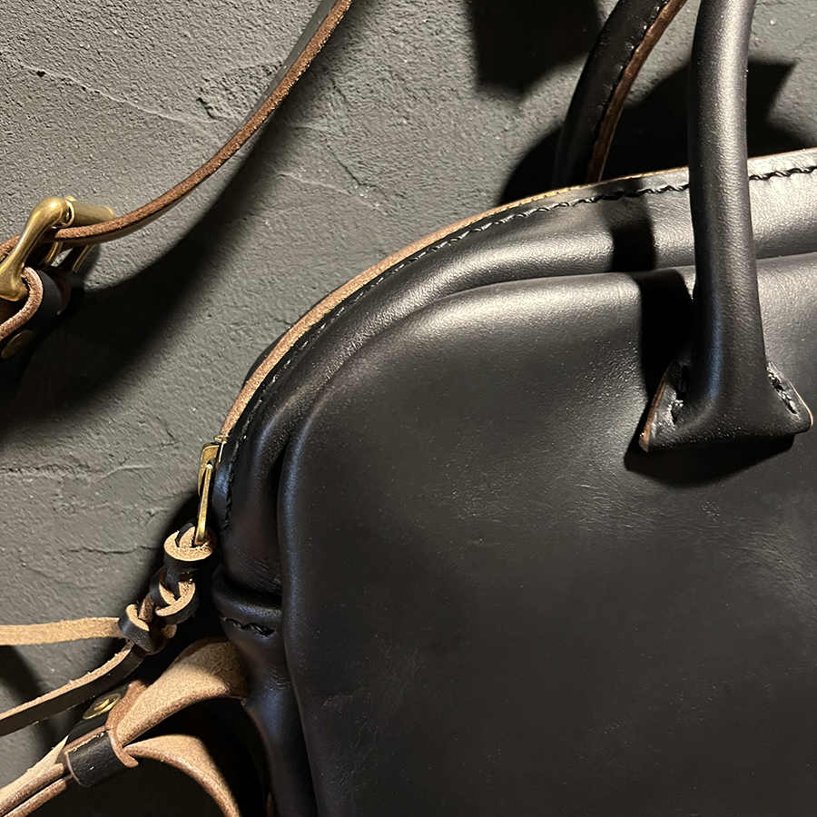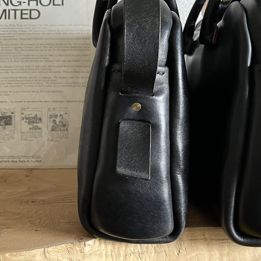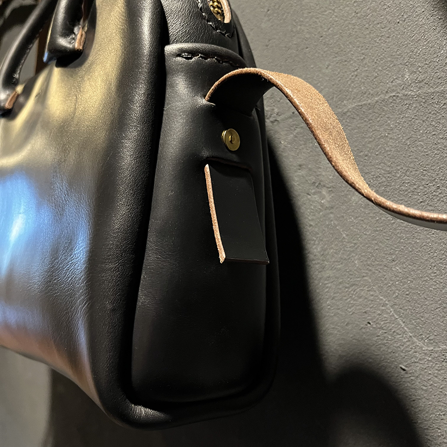 プエブロレザーとは違う革の弾力がサイドのフォルムに出てます。このフォルムがタグチが作るバッグの特徴です。