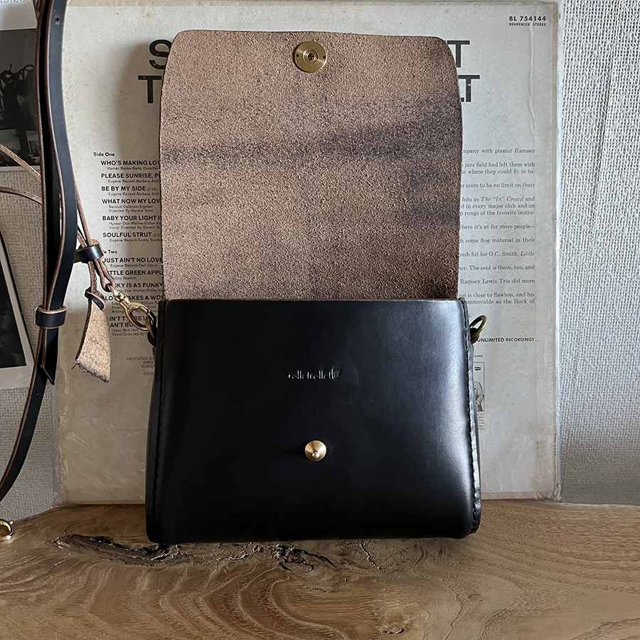clutch shoulderbag Lot#321 よりワンサイズ小さいのでショルダーベルトや金具類も小さなパーツにしてあります。 仕上がったフォルムに愛着が持てる宝物になってもらえることを意識して、、、。