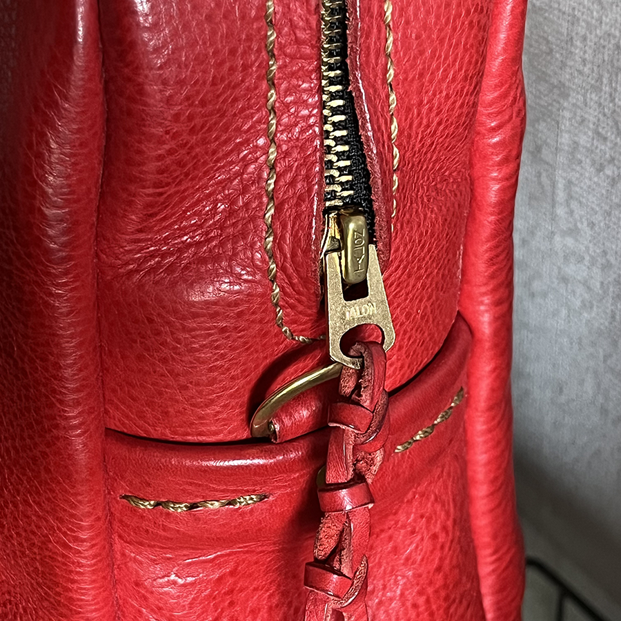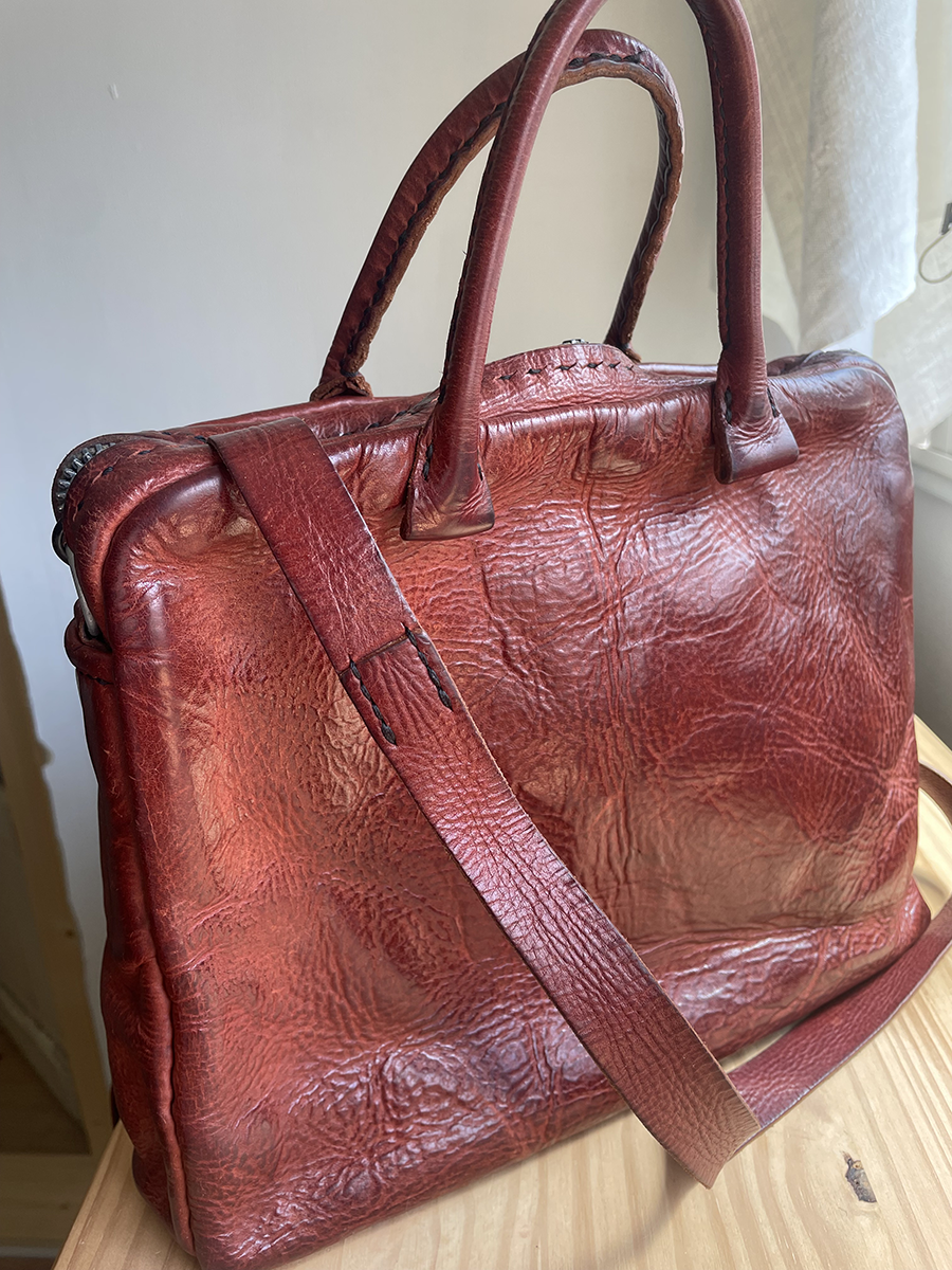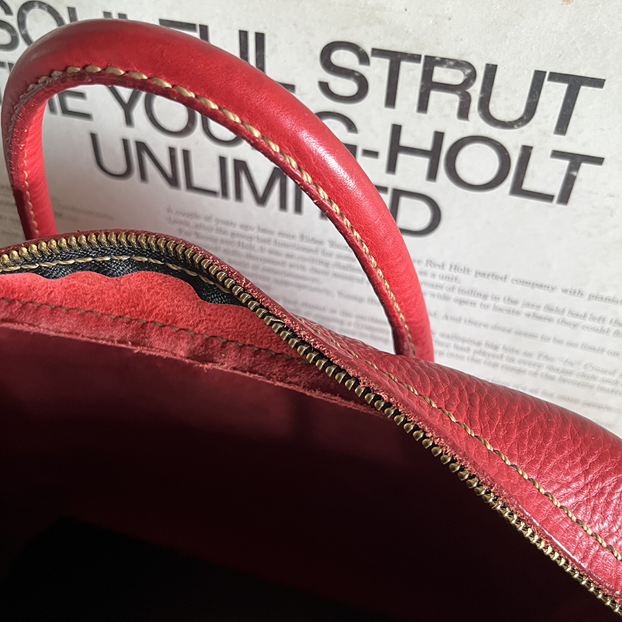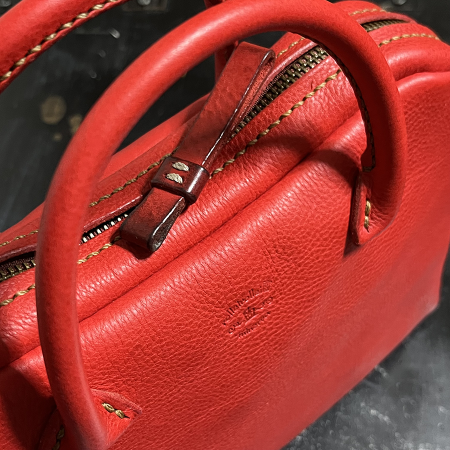 イタリアンレザーの赤いミネルバボックスという革がとてもステキな経年変化をすることを知りバッグを作りました。