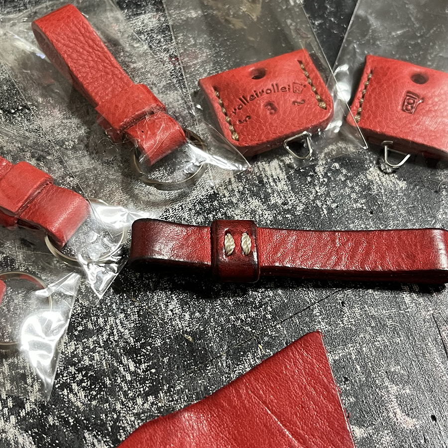 ミネルバボックスレザーの赤(パパベロ)で作った商品はまだ数点販売中です。