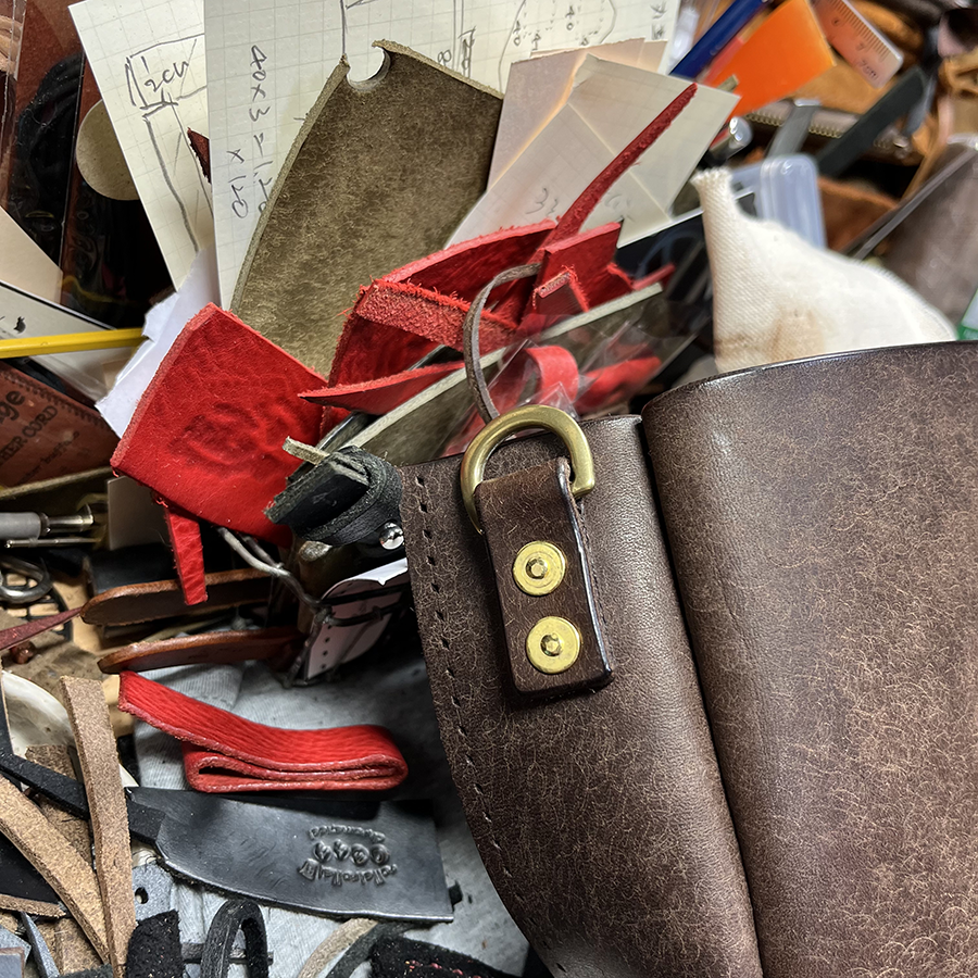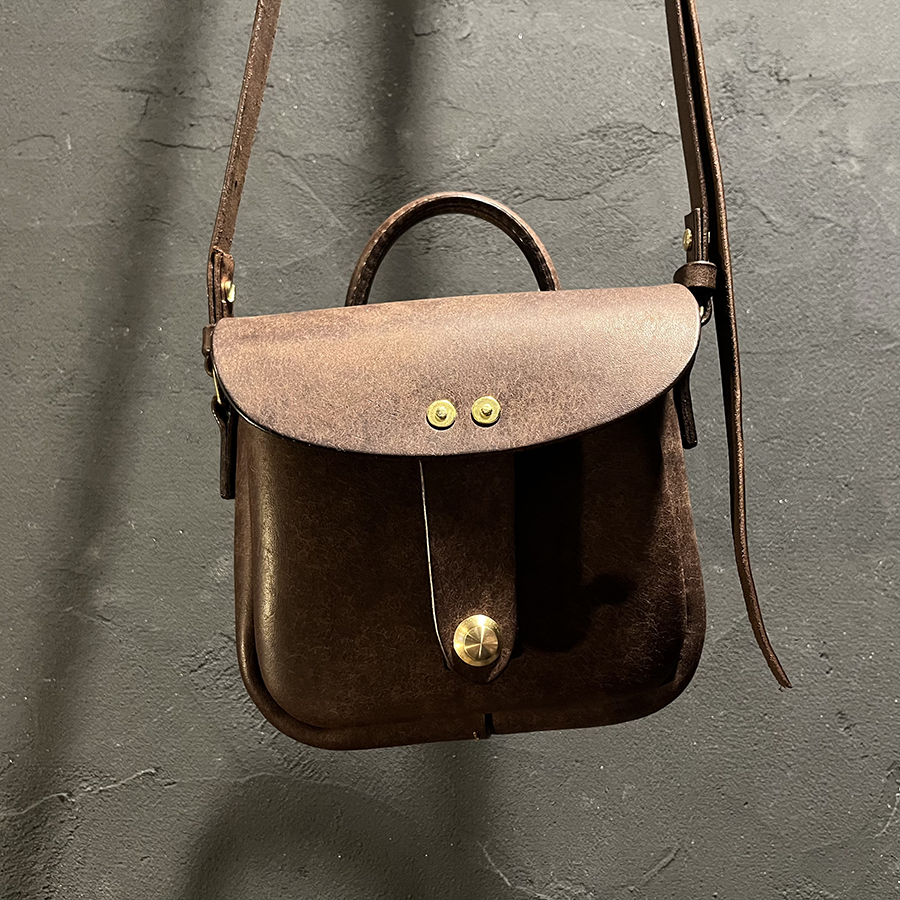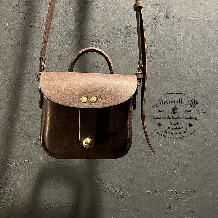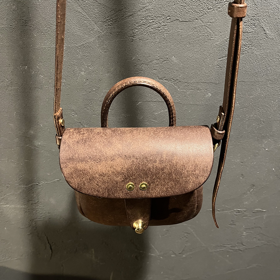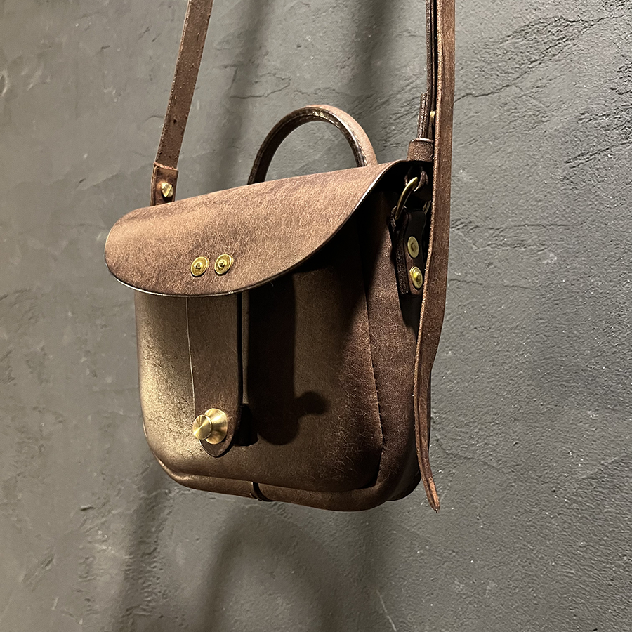 STORESで1作品目を販売していたポコッシュ (Pocoche) という名前をつけたポシェットがあります。 クロムエクセルの革で一気に何個も作り上げたバッグ のひとつです。