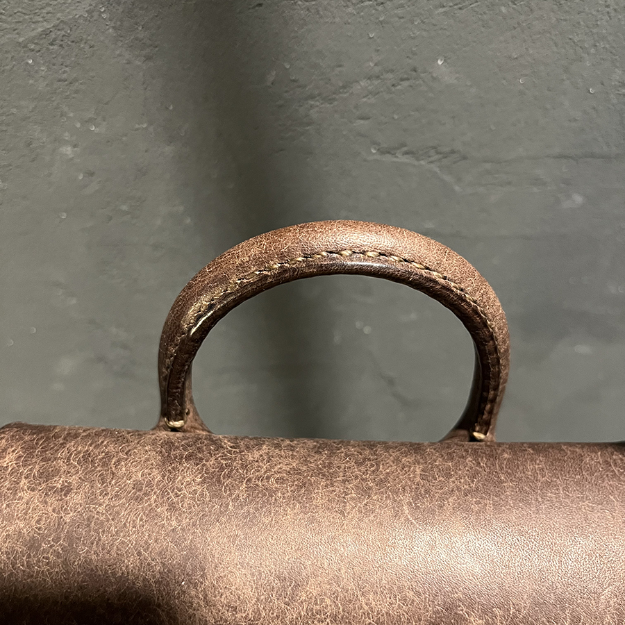 このバッグを印象付ける持ち手を縫い付けてます。ゴツい!と思ってしまうかもしれませんよね? 「それが良い」と思える方が持つポシェット(ポコッシュ)です♪