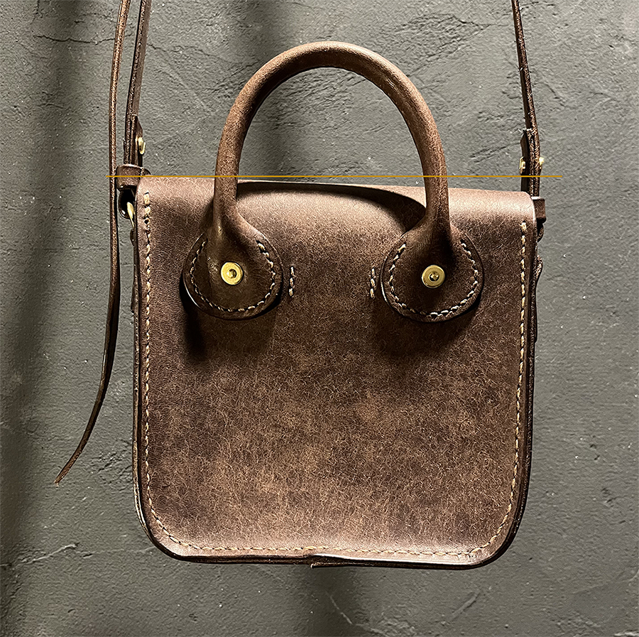 マチの部分が作り始めは一枚の革でした。 #326のようにセンターで縫い合わせた方がフォルムが良いとイメージがブレてきた結果がコレです。 STORES訳あり品お値下げ理由です。
