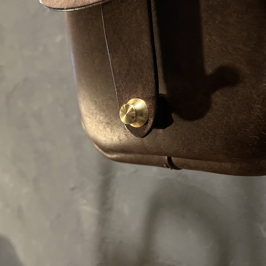 海外ではワッシャー側を表が普通のリベットの打ち方です。 真鍮製でも硬いのと柔らかいのが存在するリベットは、あちらの人みたいに「ただ上から叩いてハィ終わり〜」な仕上げ方ができない性格の僕はハードルが高いです。