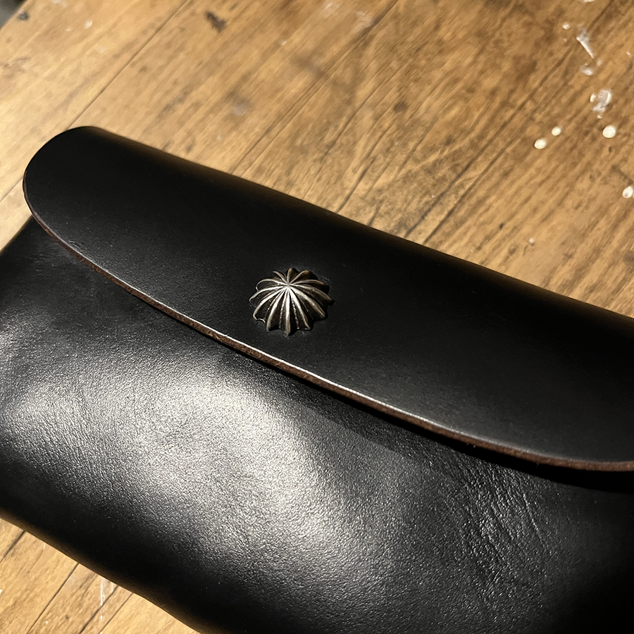 そのホックの頭(ゲンコというらしい)を真鍮削り出しで作られた平なスタイリッシュのを取り付けたのも作ります。(その場合はバネホック仕様になります)