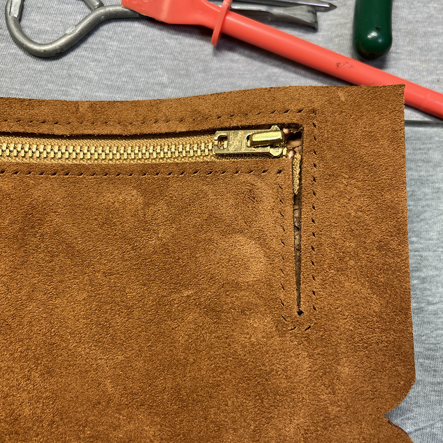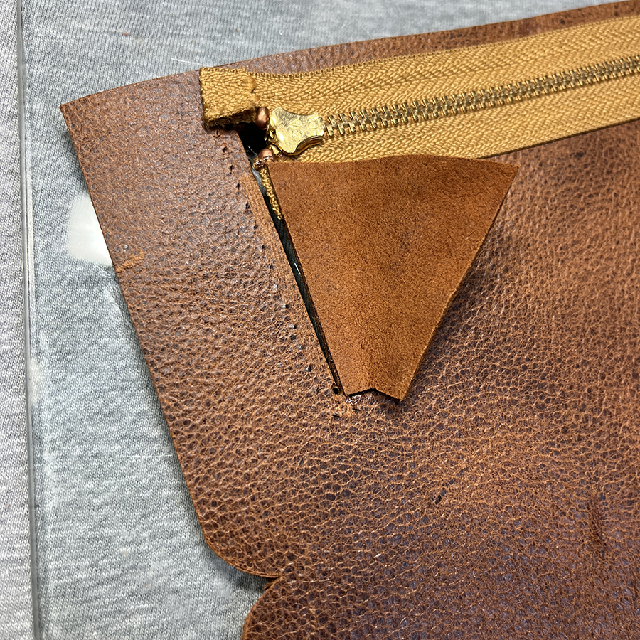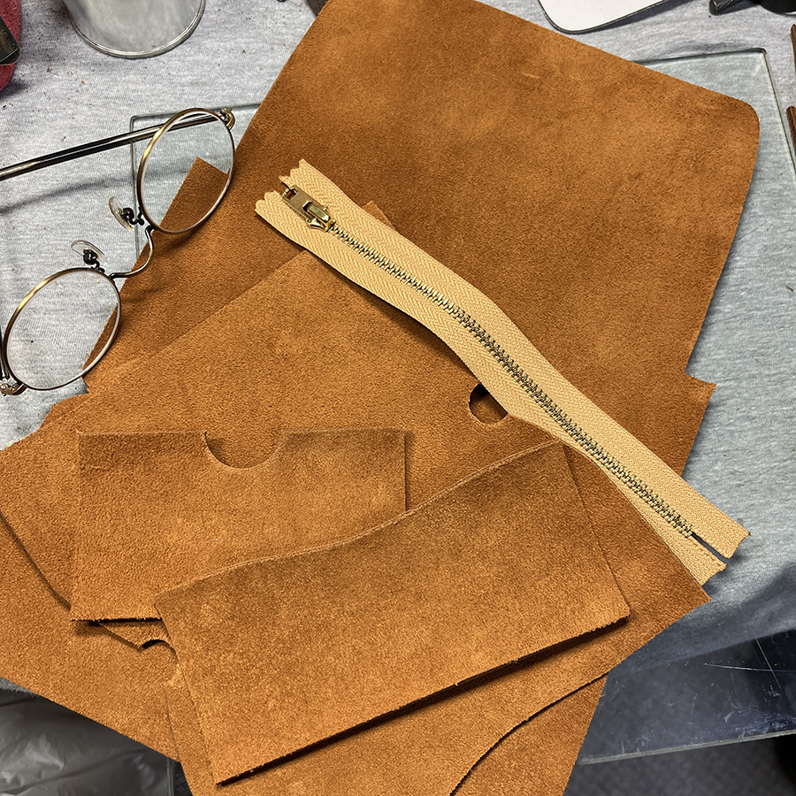 kudu革はブラック以外の在庫はオータムスパイスがハギレ程度。 ギリッギリ長財布が2個作れる分だけ切り出せました。 どうせ作るなら「小銭を出しやすく」を解決したい! 型紙を修正してジッパー取り付けパーツだけ試作を3個ほど。 できるかな♪といつものように見切り発進しました。