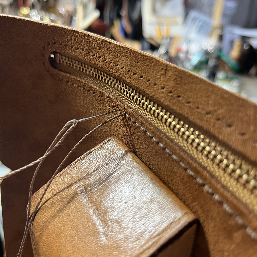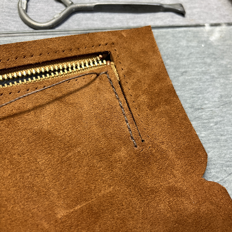 片側だけマチをつけて開くことで小銭をつかみやすくしてあります。 そういうの私持ってるよ、、、。 早くいってよ〜〜〜〜。 なひと場面もありながら作業を進めます。