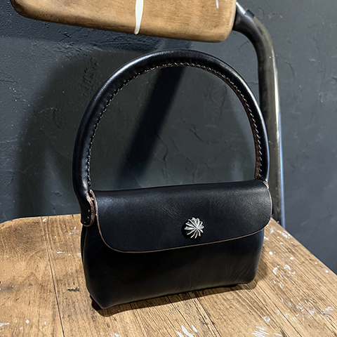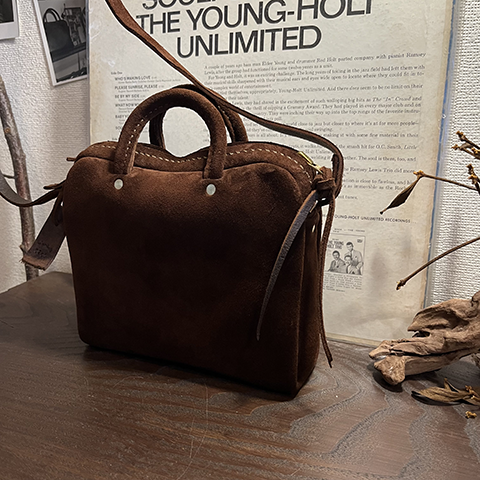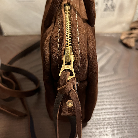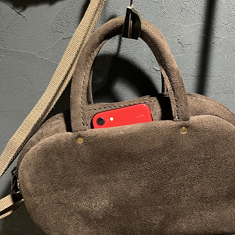 ころんとしたフォルムとプエブロレザーの表情豊かな革の質感のギャップにまずやられ、革のしっとり?もっちり?した手触りの心地よさに思わず、眺めたり撫でたりを繰り返しています。。。