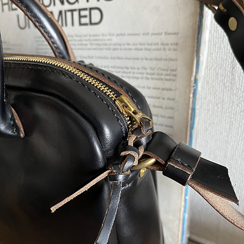 タグチ様のバッグは、革もすごいですが、作りもとても丁寧で、ステッチのひとつひとつまで揃っていて、辺の丸みとかも美しいなと思います。その他にも私のツボにハマるところがいっぱいありました。私はいつも文庫本を持ち歩くので小さすぎると困る、でも、大きすぎても可愛くない、だから、このバッグたちは丁度いいのです。 それと、ジッパーの開閉がカーブのところも引っかからずとても滑らかだなと思いました。また、内にポケットが無いシンプルなところも良いと思いました。 ショルダーを使用する場合に持ち手がクタっと倒れないデザインなのも好きです。